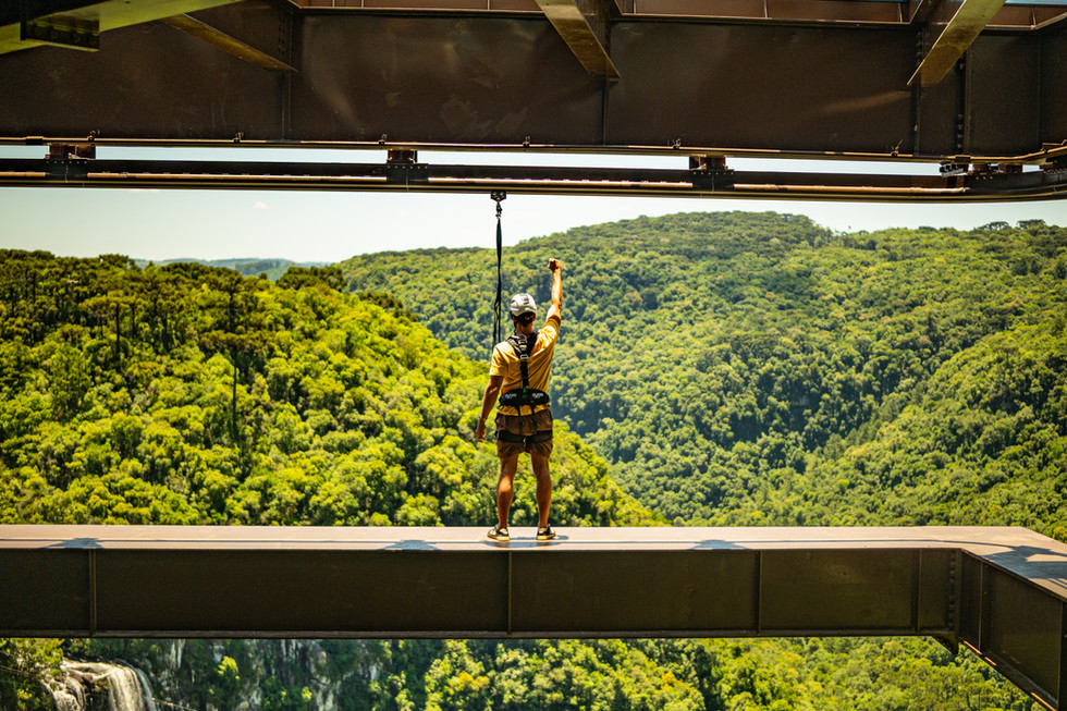 CANELA- Atração permite caminhar por uma viga suspensa a 170 metros de altura com vista para a Cascata do Caracol